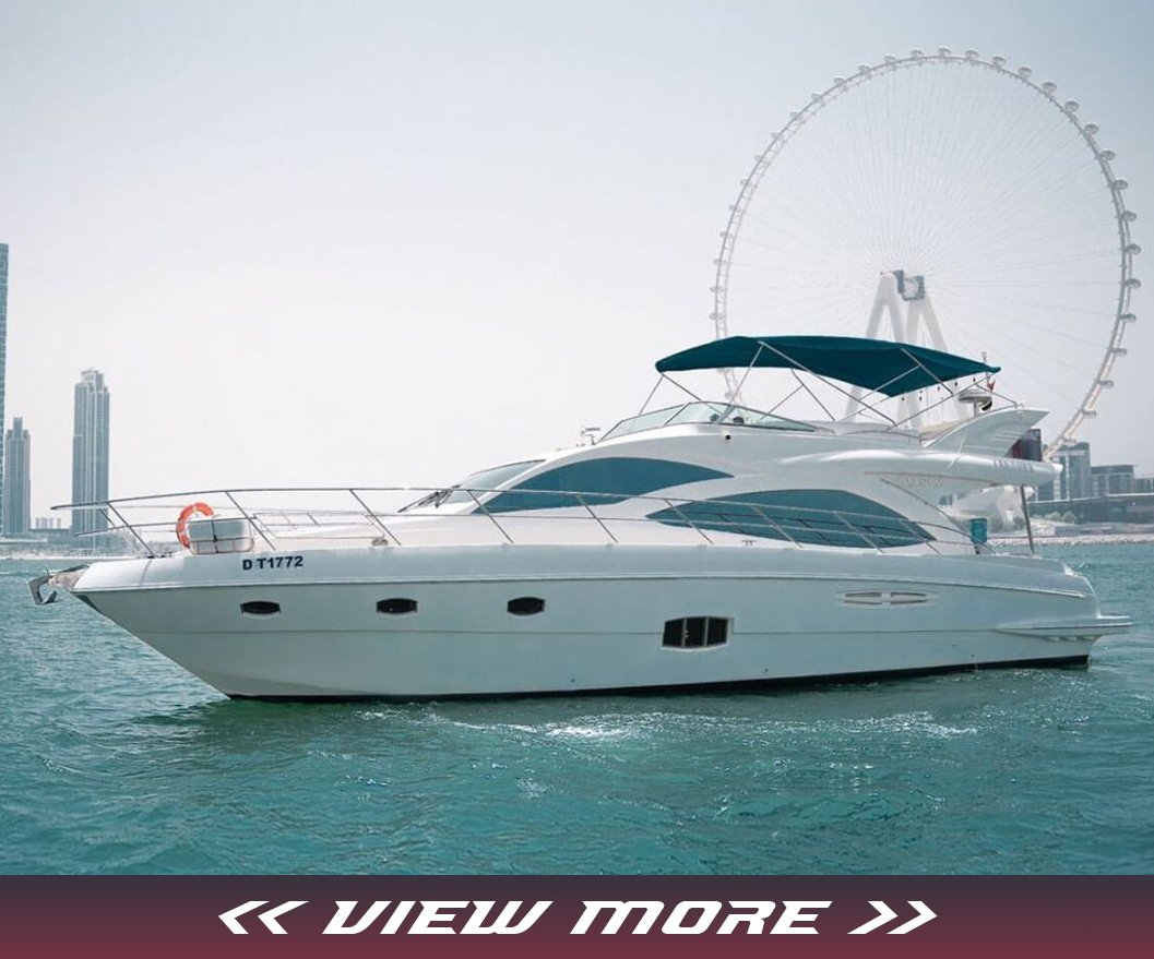 Our company is pleased to present the 55 Feet Majesty luxury double-deck Yacht rental Dubai, the "Lagoona," offering superb amenities for your unforgettable experience. With a spacious hall, three bedrooms, washroom, kitchen, music system, and comfortable seating on the flybridge, this yacht ensures your utmost comfort and enjoyment during your cruise.