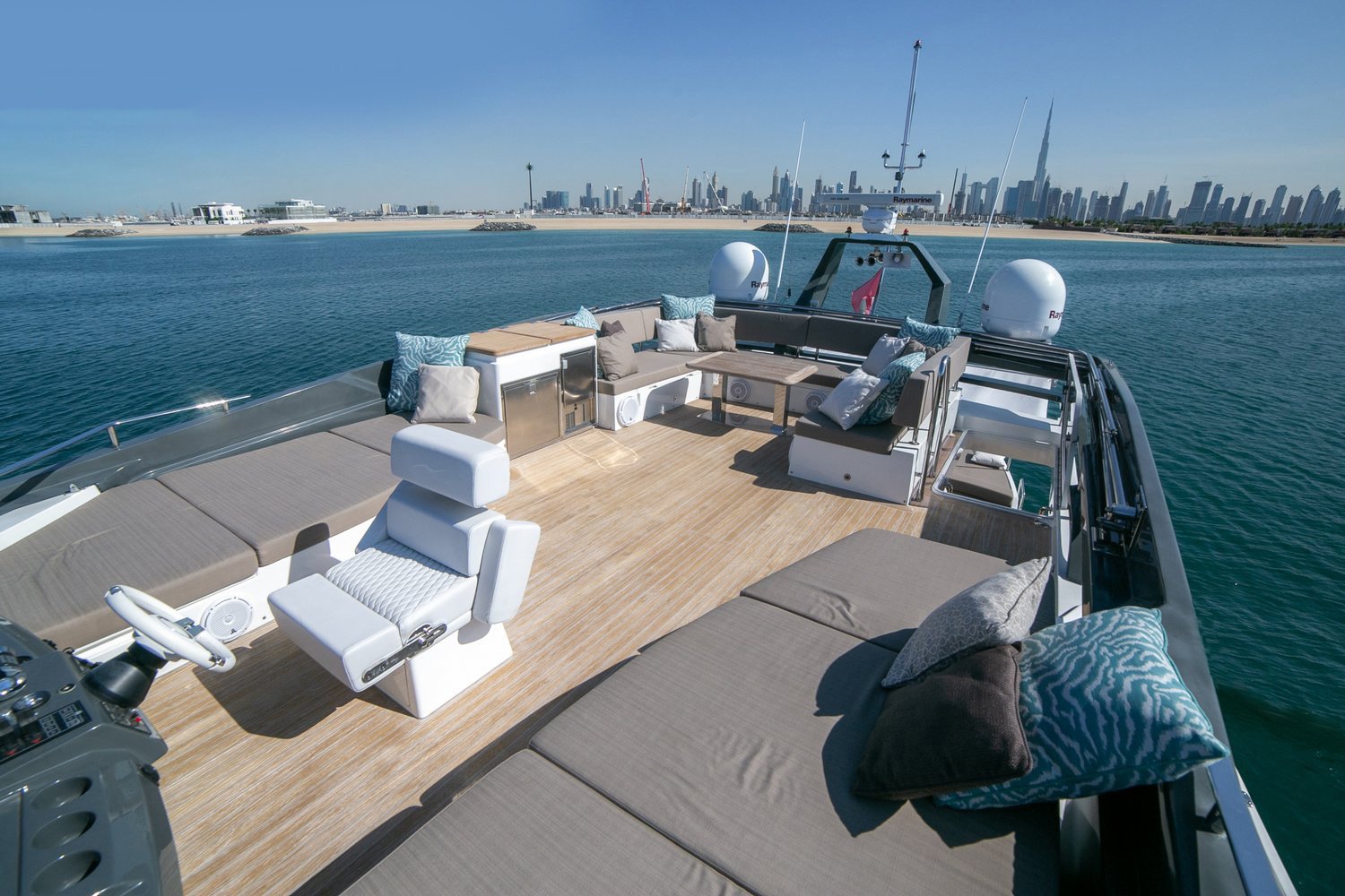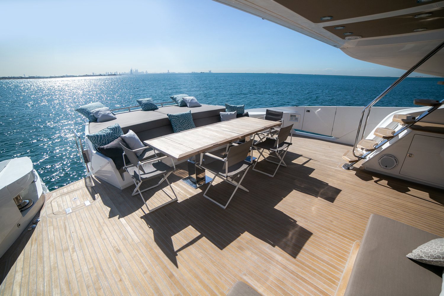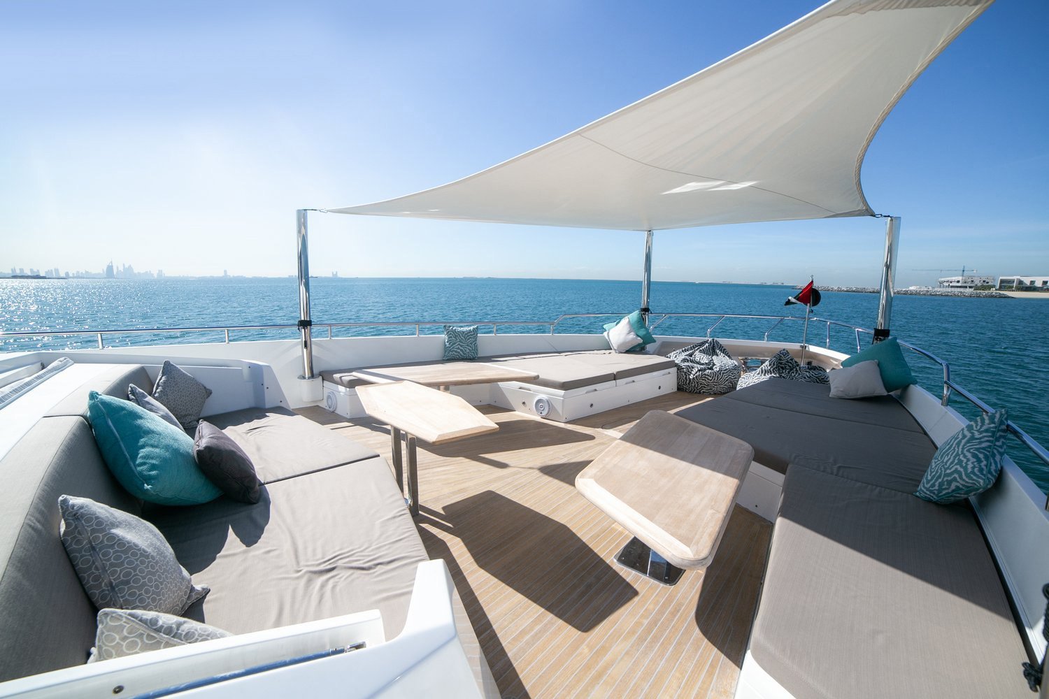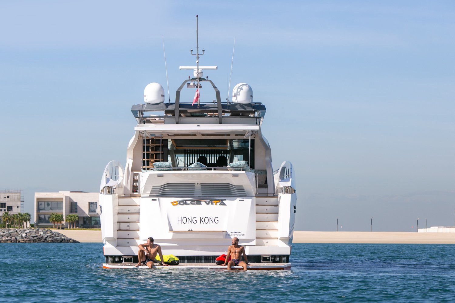 Built by Numarine, this 105ft luxury yacht hire will surely offer a memorable sailing fun anywhere in Dubai Marina and the UAE. With an equally alluring and sporty design, high level of functionality and performance, Dolce Vita stands apart among the other party boat rental services. This luxury yacht charter is the perfect choice for private parties and corporate gatherings that require accommodation of up to 25 passengers at a time.