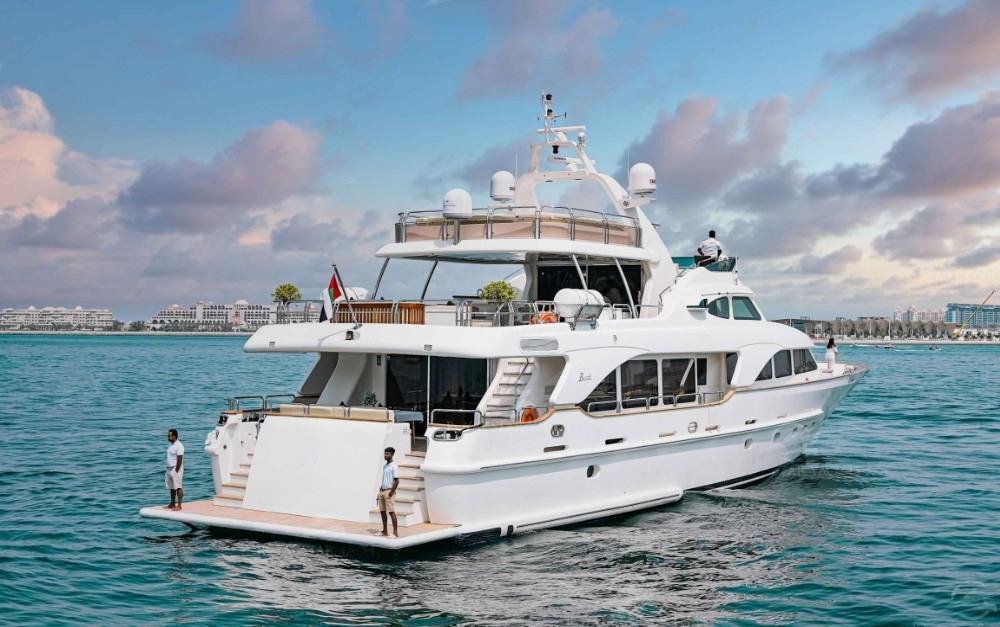 Our company is pleased to offers you the 110 Feet Super Luxury BENETTI luxury double-deck Yacht with very spacious Hall along with the 3 bedrooms washroom kitchen, Music system and the very nice sitting place on the fly bridge as well in Aed 3999 Each hour Only
