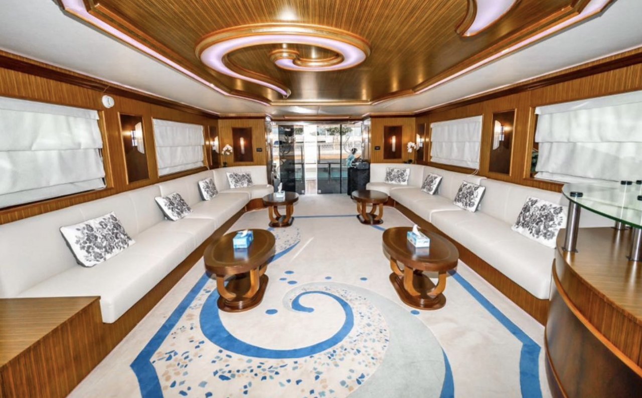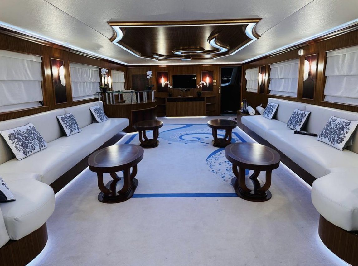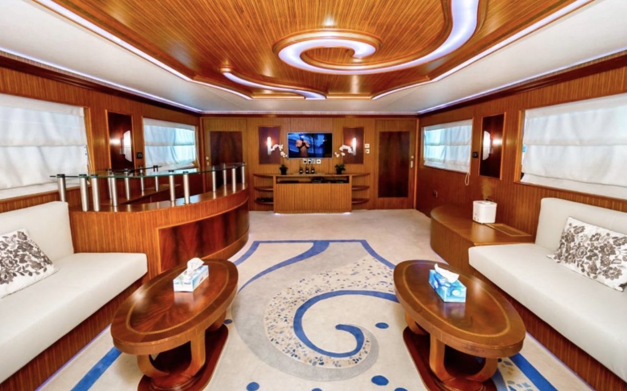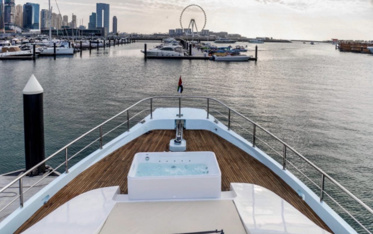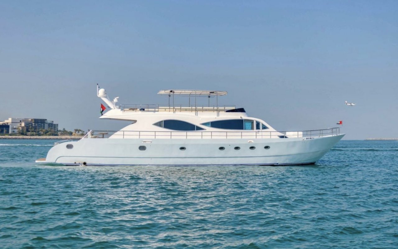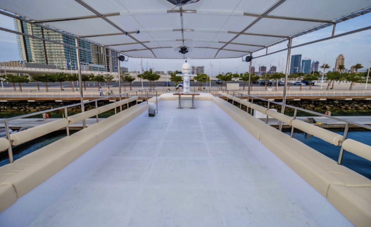 Our company is pleased to offers you the Super Luxury 120  feet Air-conditioned double-deck Yacht charter DubaiWith with 4-bed room with very spacious Hall along with the washroom kitchen Satellite television, Music system and the very nice sitting place on the fly bride as well. Our price is Aed 2999 Each hour Only .. Our offer include the water soft drinks and ice along with very good music system and fully Air conditioned yacht and you can also bring your own food and drinks in yacht.
