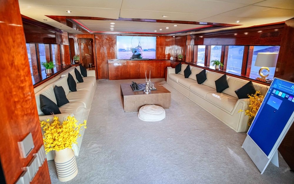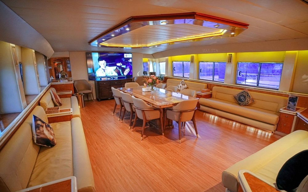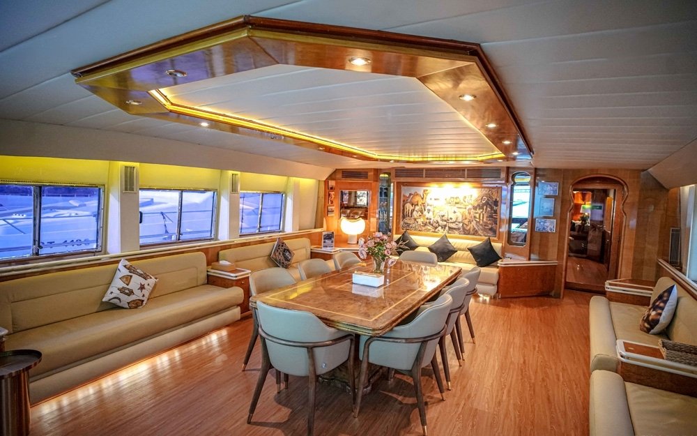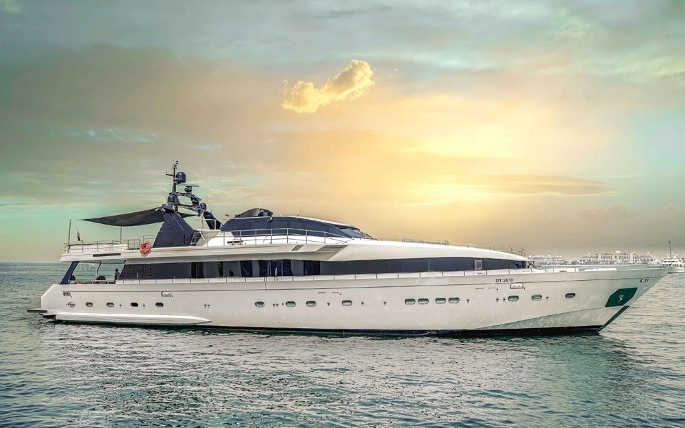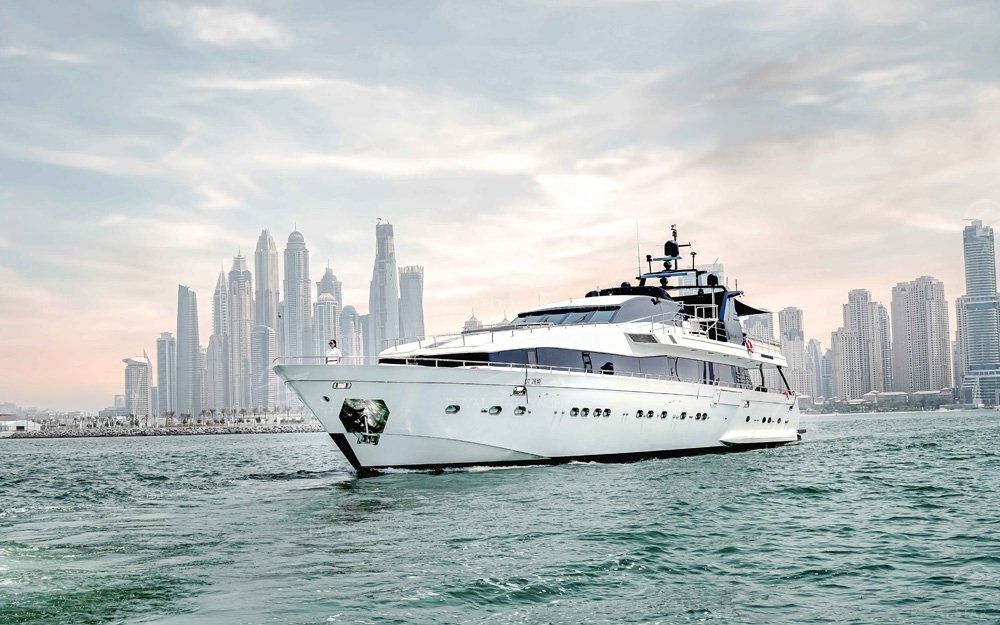 We are pleased to offer you the Top rated Huge Super Luxury 135 Feet yacht rental Dubai in Aed 3999 per hour only with the capacity of 120 guest with Super luxury facilities and Experienced staff. The yacht length is 135 FT and it has 4 Cabins + 4 toilets,3 Showers + Kitchen as well.and the very nice sitting place on the fly bridge as well.
