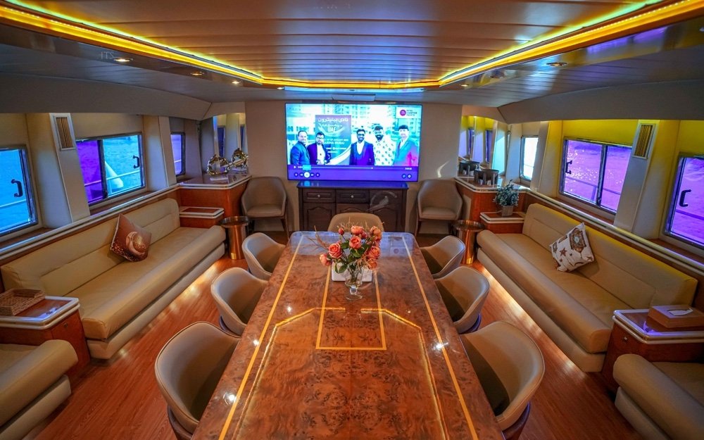 - Cruising Route : Dubai Marina — JBR — Blue water Island – Ain Dubai Ferris Wheel — Palm Island , Atlantis The Palm Burj al arab