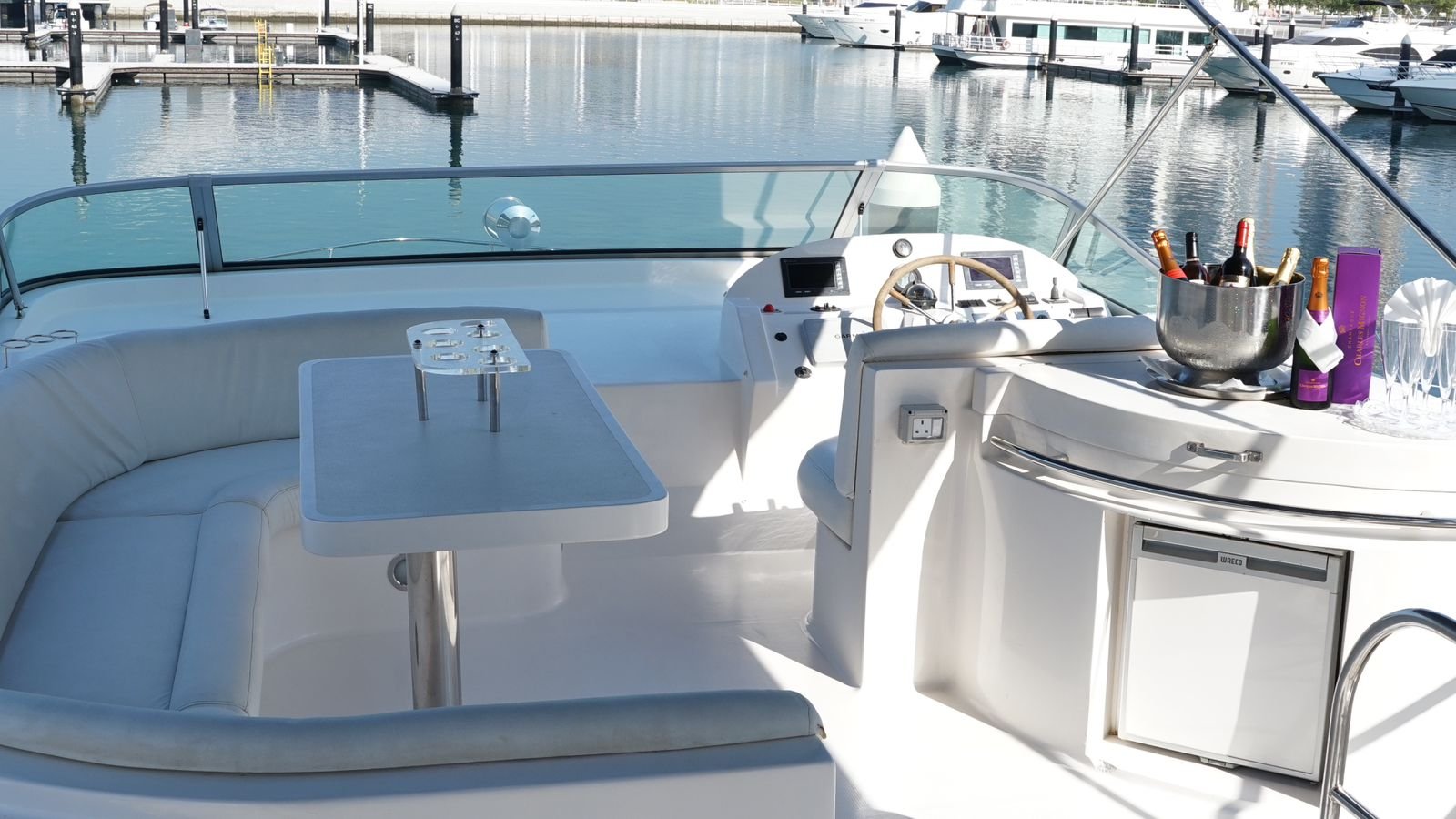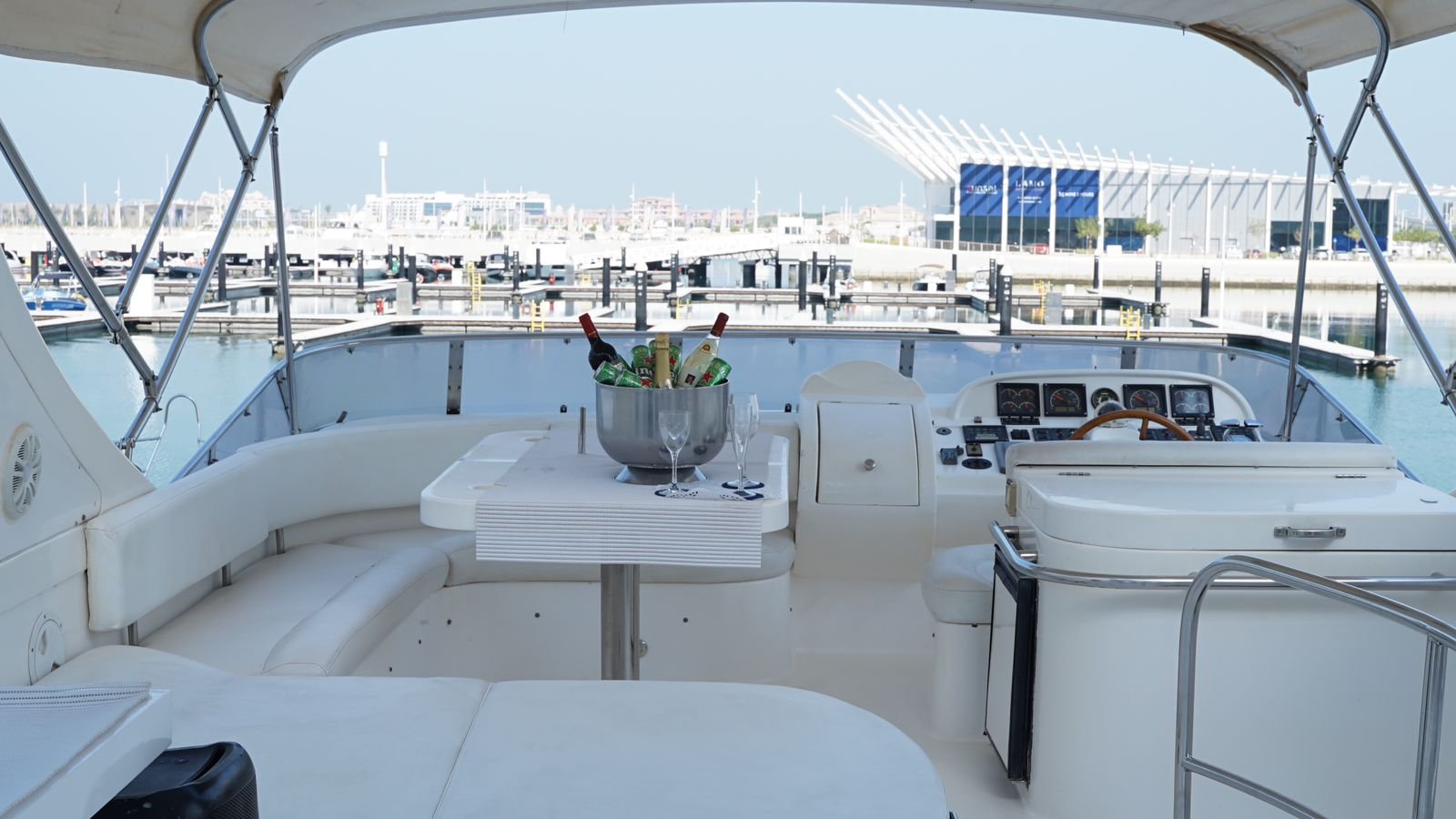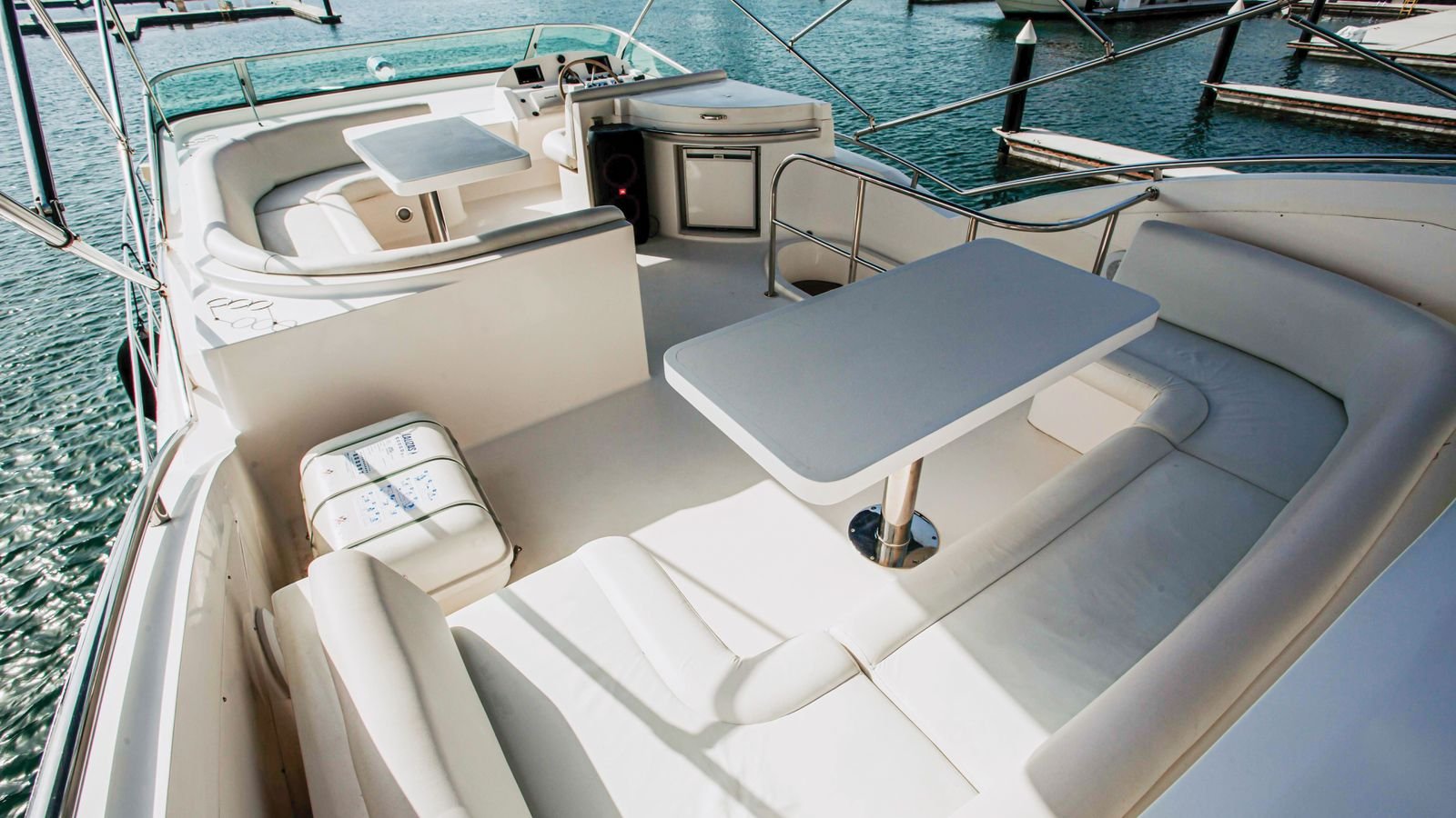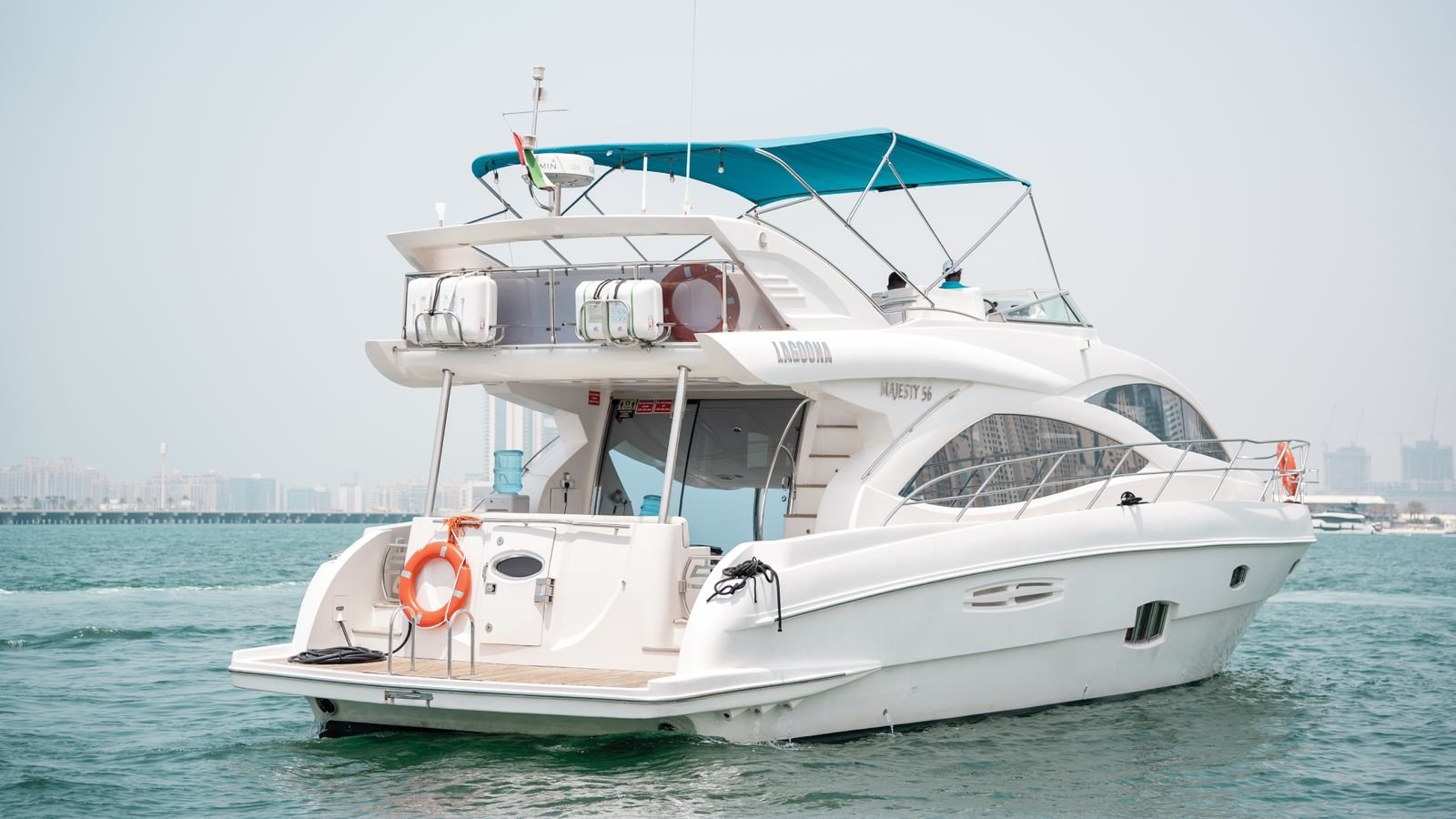 Our company is pleased to present the 55 Feet Majesty luxury double-deck Yacht rental Dubai, the “Lagoona,” offering superb amenities for your unforgettable experience. With a spacious hall, three bedrooms, washroom, kitchen, music system, and comfortable seating on the flybridge, this yacht ensures your utmost comfort and enjoyment during your cruise.