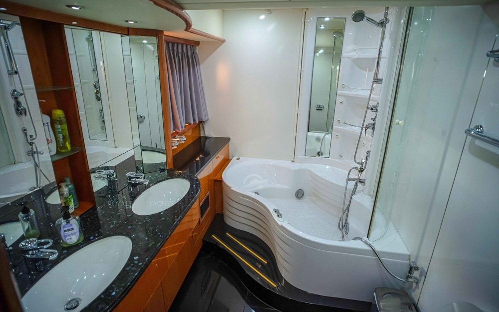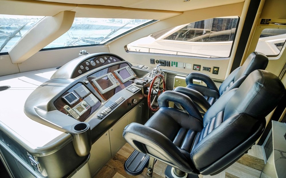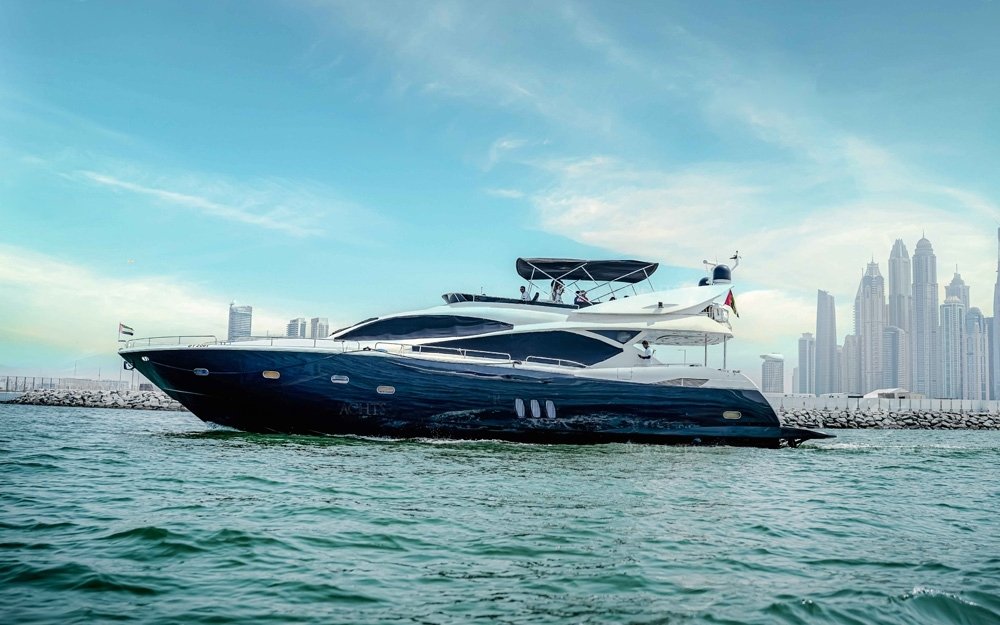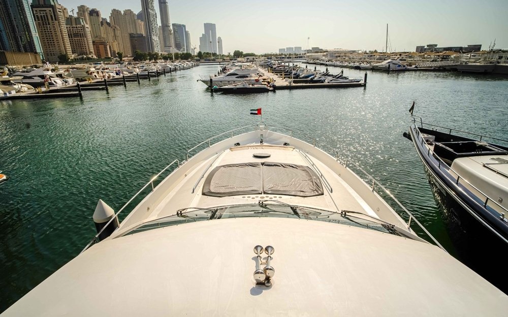 This luxury yacht is designed with exquisite designs and onboard facilities to be a unique private yacht from the Sunseeker collection. With this private boat hire, you will enjoy a Flybridge comprising an exceptional open deck and lounge seating. Equipped with a modern entertainment system and a stereo-sound Bose PA audio system, this luxury yacht rental service have become a popular choice available In Aed 2999 each hour only.