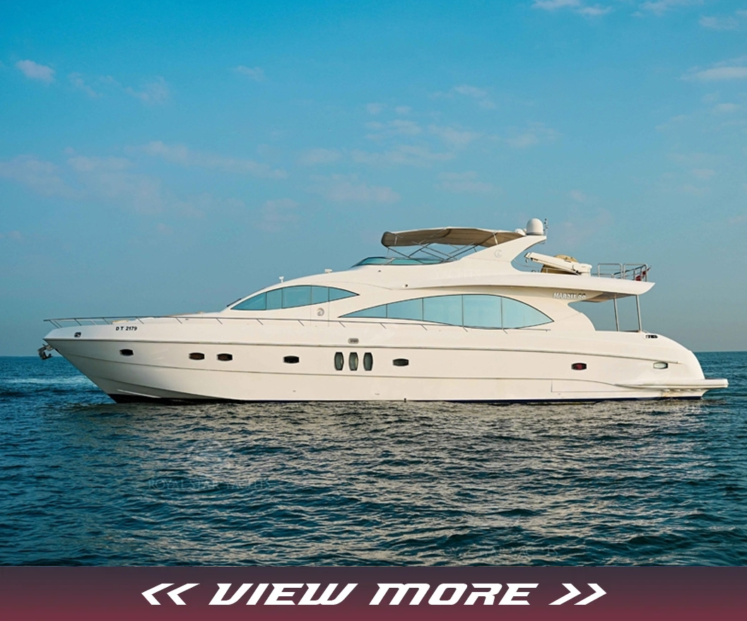 Our company is pleased to present the 55 Feet Majesty luxury double-deck Yacht rental Dubai, the "Lagoona," offering superb amenities for your unforgettable experience. With a spacious hall, three bedrooms, washroom, kitchen, music system, and comfortable seating on the flybridge, this yacht ensures your utmost comfort and enjoyment during your cruise.