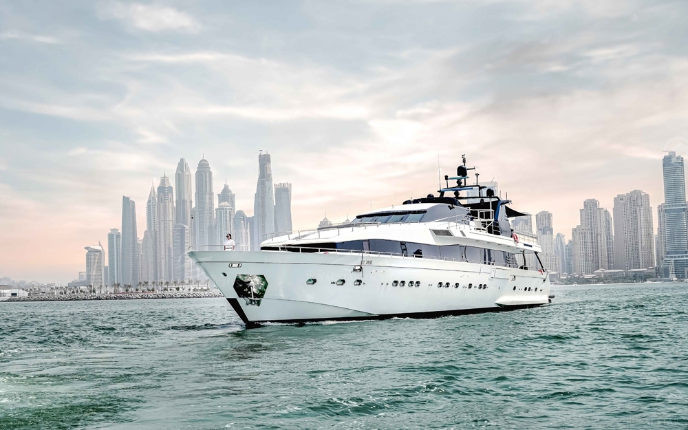 We are pleased to offer you the Top rated Huge Super Luxury 135 Feet yacht rental Dubai in Aed 3999 per hour only with the capacity of 120 guest with Super luxury facilities and Experienced staff. The yacht length is 135 FT and it has 4 Cabins + 4 toilets,3 Showers + Kitchen as well.and the very nice sitting place on the fly bridge as well.
