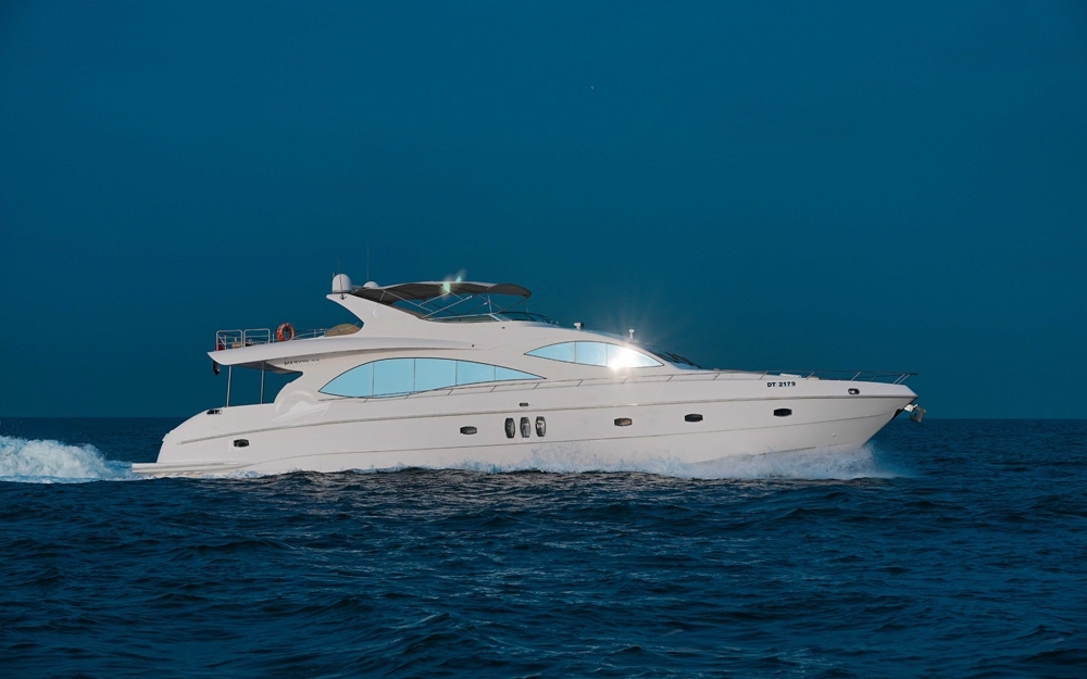Majesty 88 Ft. yacht. Perfect for any occasion, from intimate gatherings to corporate events, this exquisite vessel offers unparalleled comfort and style. With spacious decks, modern amenities, and a professional crew dedicated to ensuring an unforgettable experience, every moment aboard is infused with elegance and opulence.
