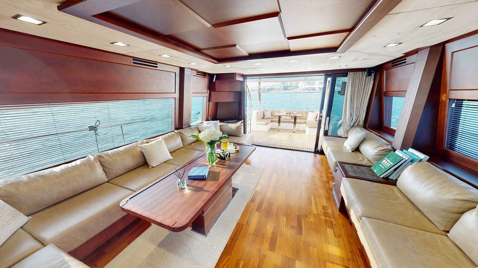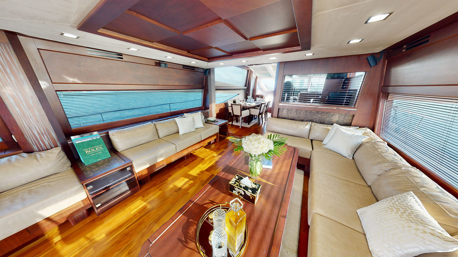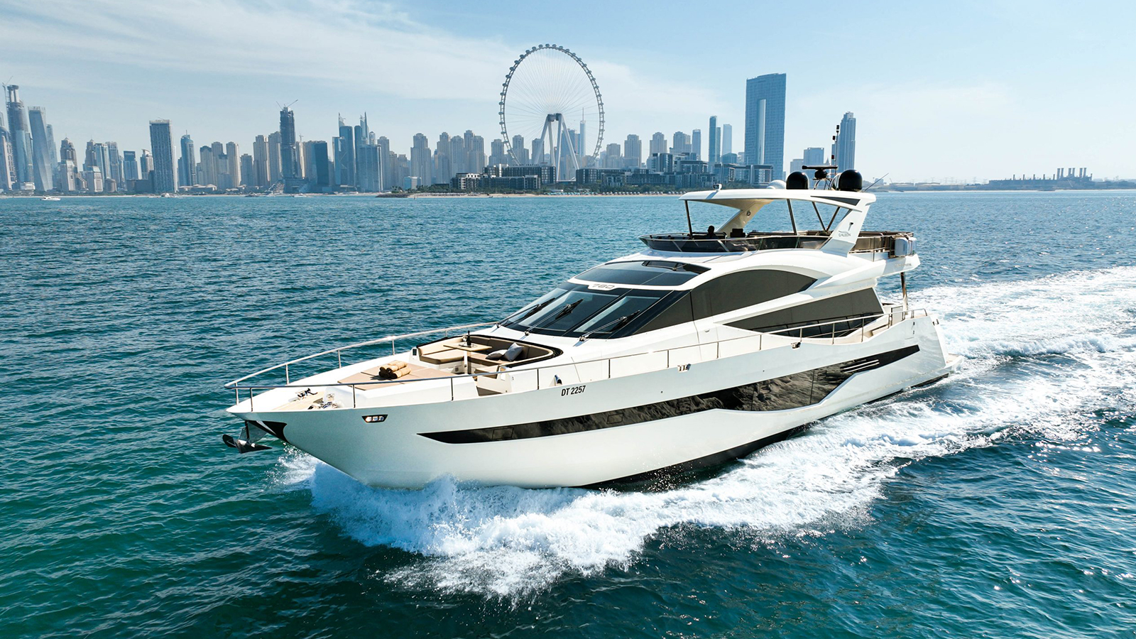 The yacht features a spacious layout with 4 luxurious cabins, 4 toilets, and 3 showers, along with a fully equipped kitchen. Relax and enjoy breathtaking views from the elegant flybridge seating area.